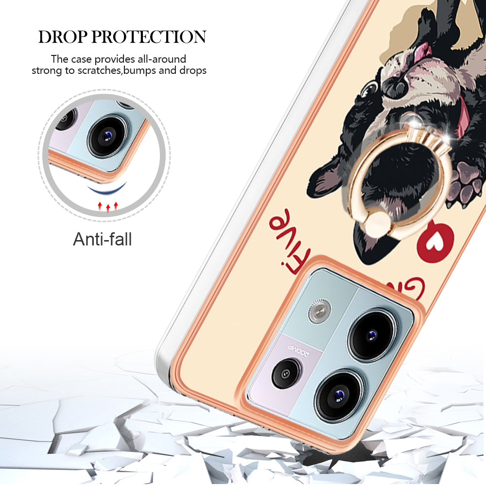 YB IMD Series-20 Style D for Xiaomi Redmi Note 13 Pro 5G / Poco X6 5G Case 2.0mm TPU Ring Kickstand Phone Cover - Dog