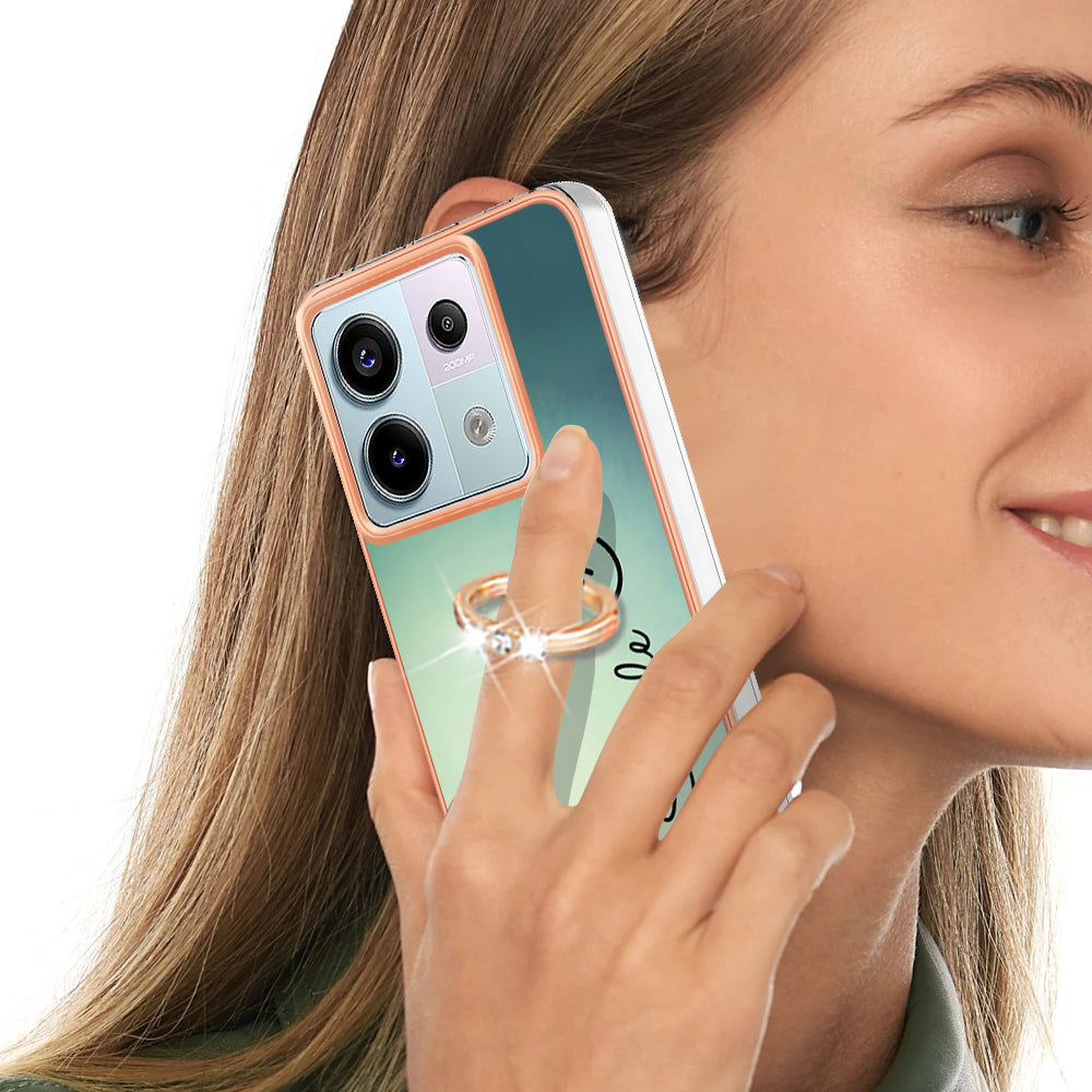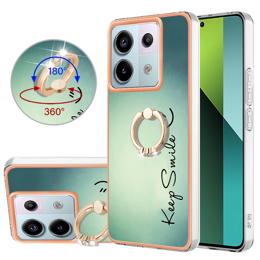YB IMD Series-20 Style D for Xiaomi Redmi Note 13 Pro 5G / Poco X6 5G Case 2.0mm TPU Ring Kickstand Phone Cover - Keep Smile
