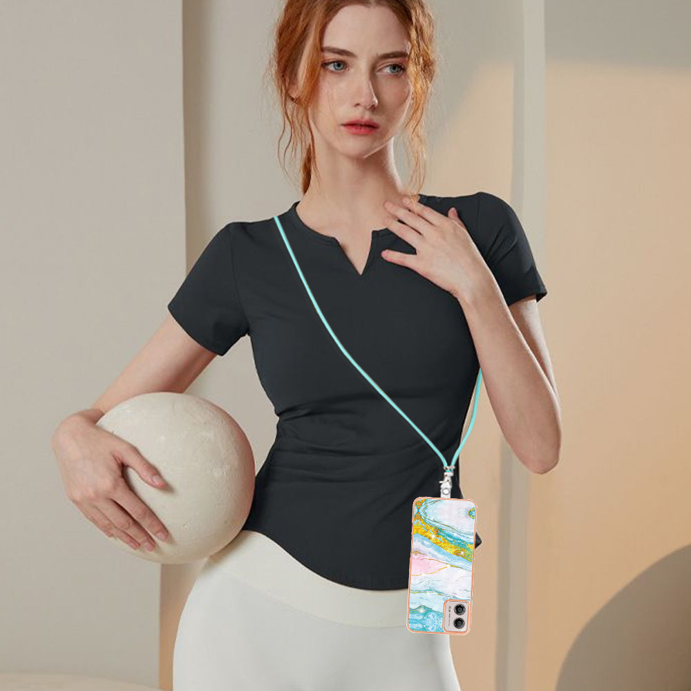 YB IMD Series-9 For Motorola Moto G53 5G / G13 4G TPU Cover Electroplated IMD Marble Pattern Phone Case with Lanyard - Green 004