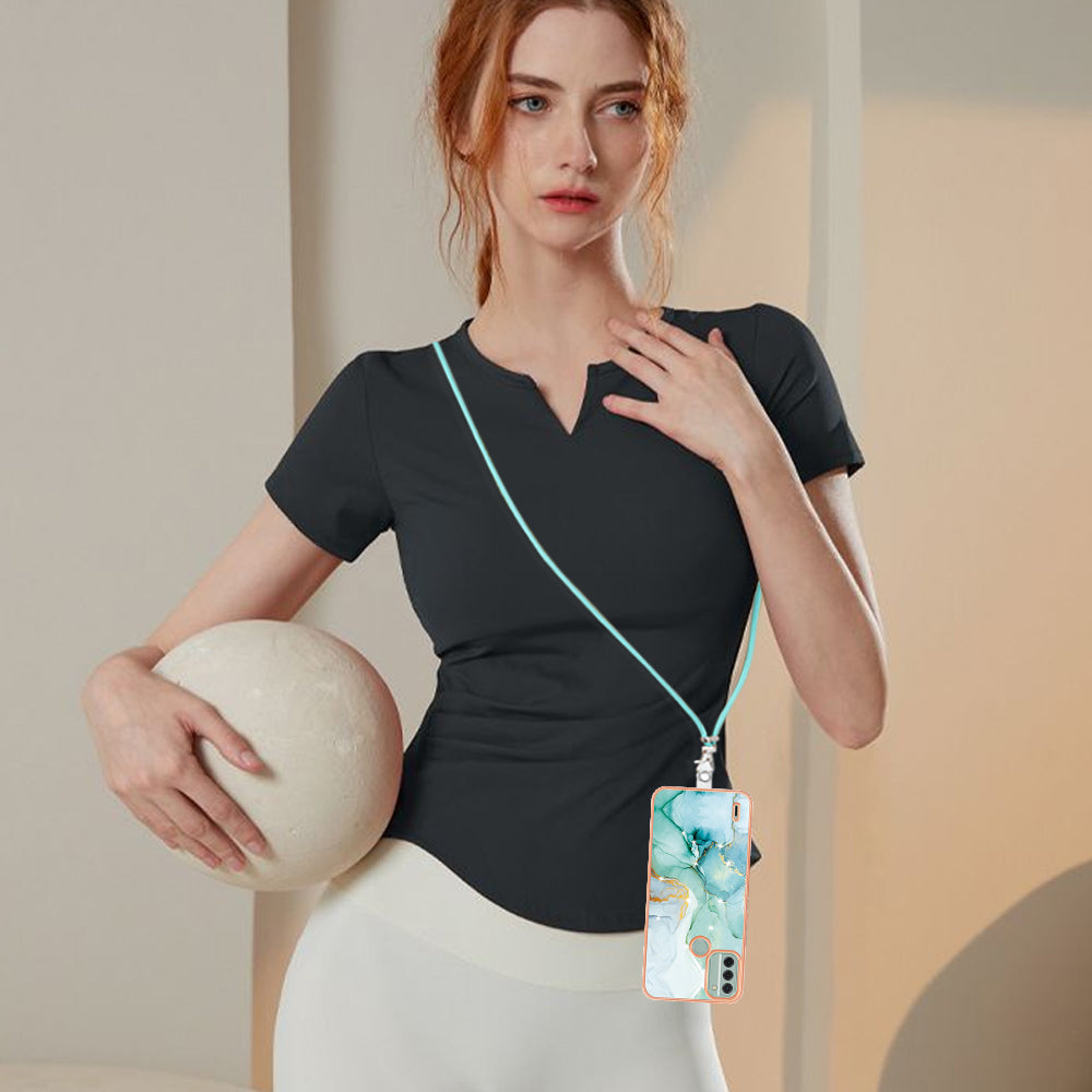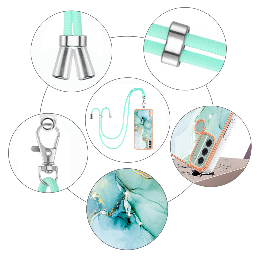 YB IMD Series-9 For Nokia C31 4G Marble Pattern Phone Case Electroplating IMD TPU Back Cover with Lanyard - Green 003