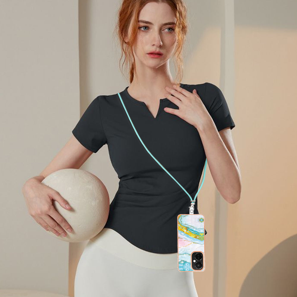 YB IMD Series-9 For OnePlus Nord CE 3 Lite 5G / N30 5G Marble Pattern IMD Case Electroplated TPU Cover with Lanyard - Green 004