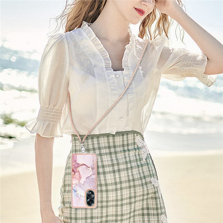 YB IMD Series-9 For Oppo A58 4G Phone Cover Electroplating Marble Pattern IMD TPU Case - Rose Gold 005