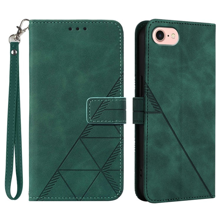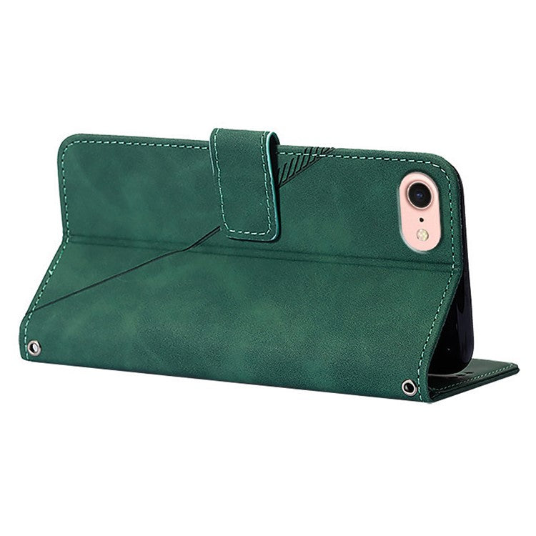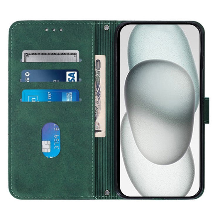 YB Imprinting Series-1 For iPhone 16e Case Magnetic Leather Wallet Phone Cover with Handy Strap - Blackish Green