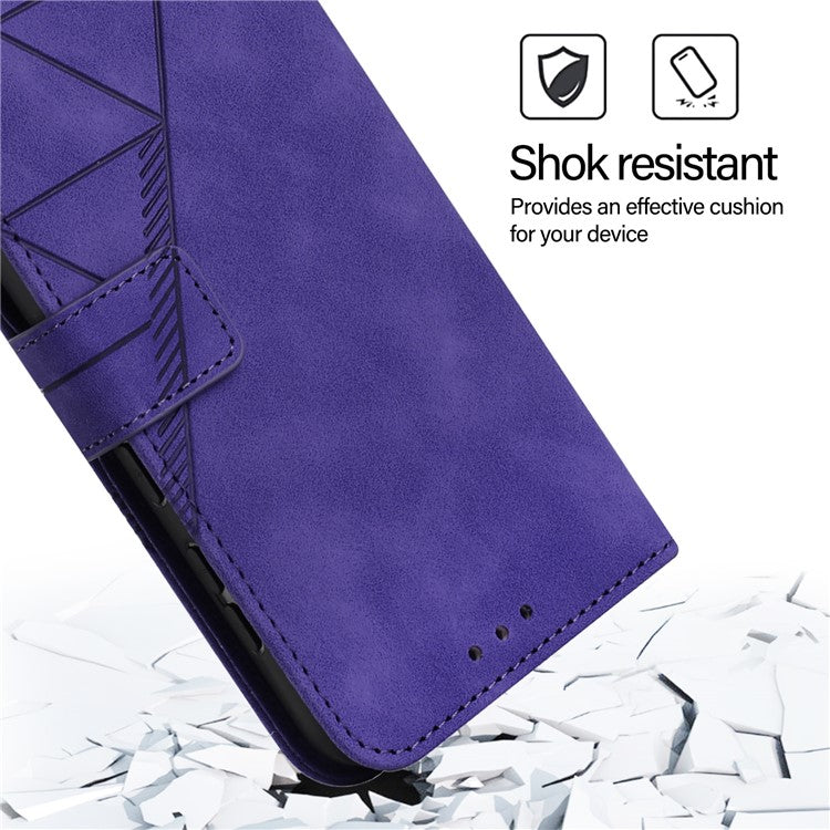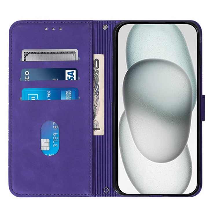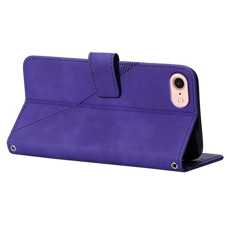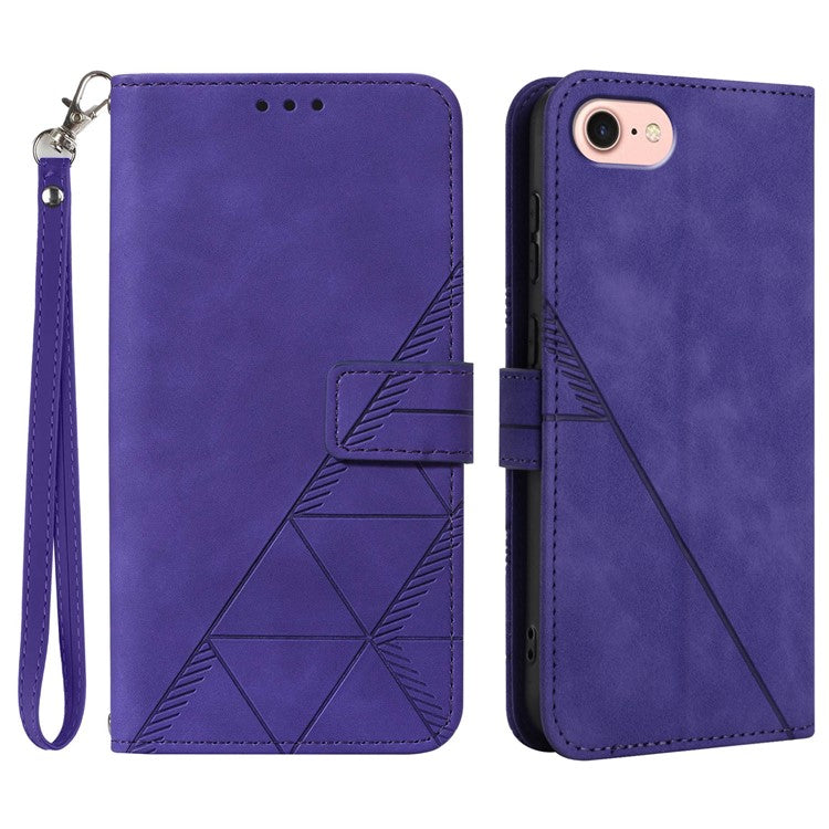 YB Imprinting Series-1 For iPhone 16e Case Magnetic Leather Wallet Phone Cover with Handy Strap - Purple