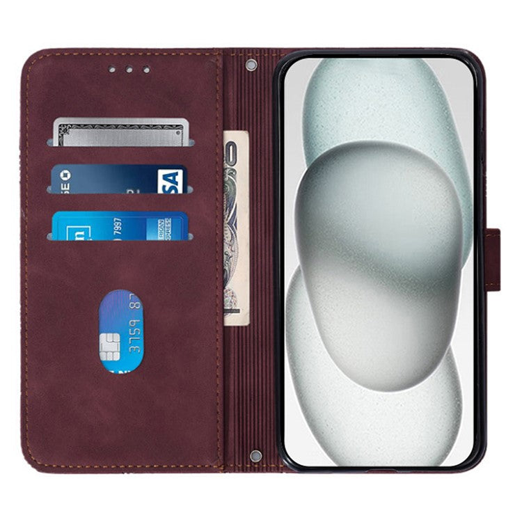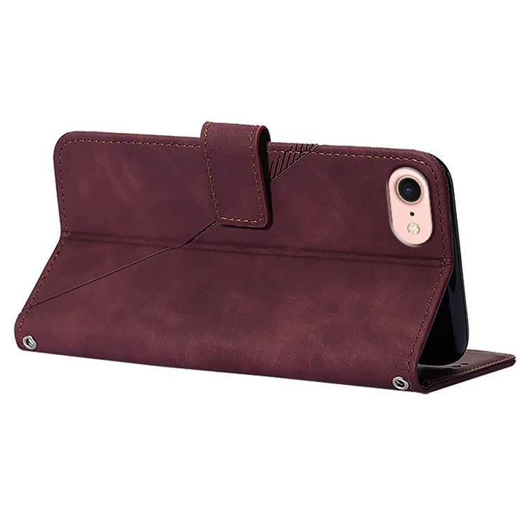 YB Imprinting Series-1 For iPhone 16e Case Magnetic Leather Wallet Phone Cover with Handy Strap - Wine Red