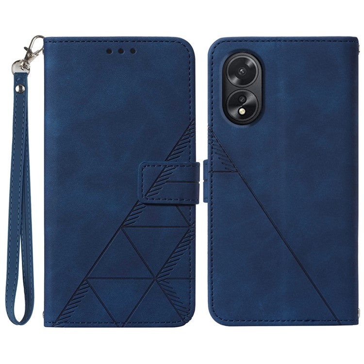 YB Imprinting Series-1 For Oppo A38 4G Phone Case Stand Wallet Leather Cover with Strap - Sapphire