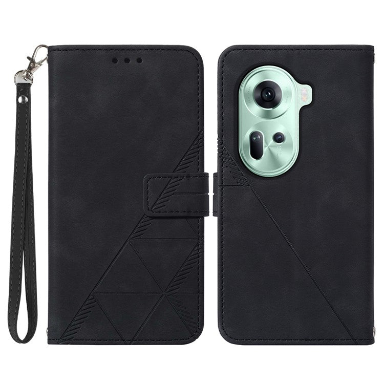 YB Imprinting Series-1 For Oppo Reno11 5G (Global) Case Wallet PU Leather Line Pattern Phone Cover Handbag - Black