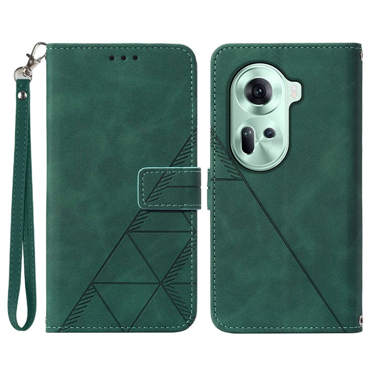 YB Imprinting Series-1 For Oppo Reno11 5G (Global) Case Wallet PU Leather Line Pattern Phone Cover Handbag - Blackish Green