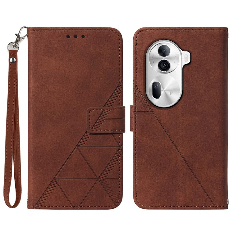 YB Imprinting Series-1 For Oppo Reno11 Pro 5G (Global) Case Leather Stand Flip Phone Cover with Hand Strap - Brown