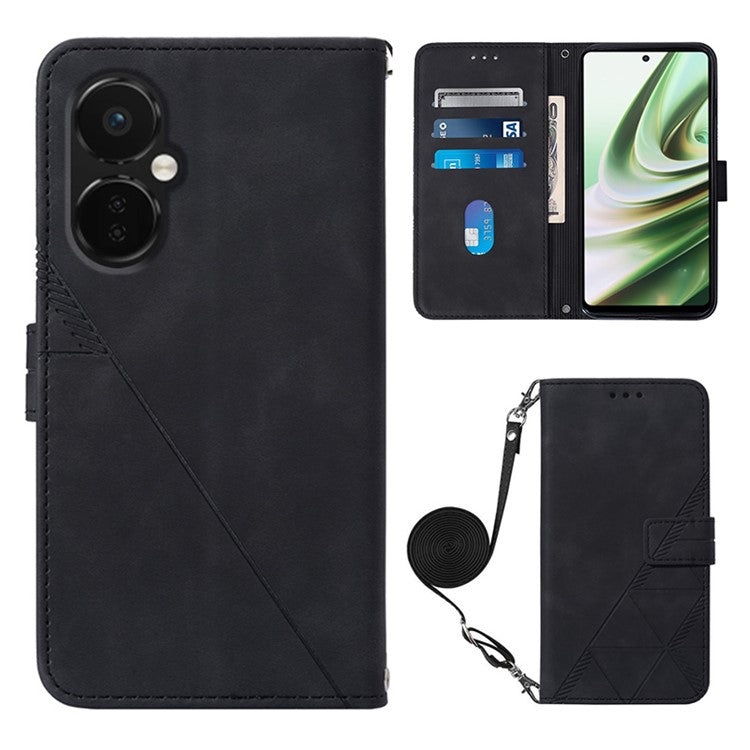 YB Imprinting Series-2 Anti-Drop Case for OnePlus Nord CE 3 Lite 5G / Nord N30 5G Leather Flip Cover Imprinted Lines Business Phone Case - Black