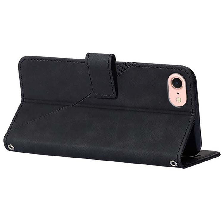 YB Imprinting Series-2 for iPhone 16e Cell Phone Case Stand Magnetic Cover with Shoulder Strap - Black