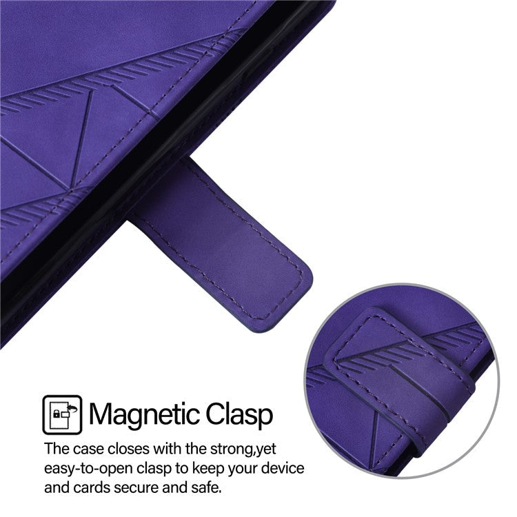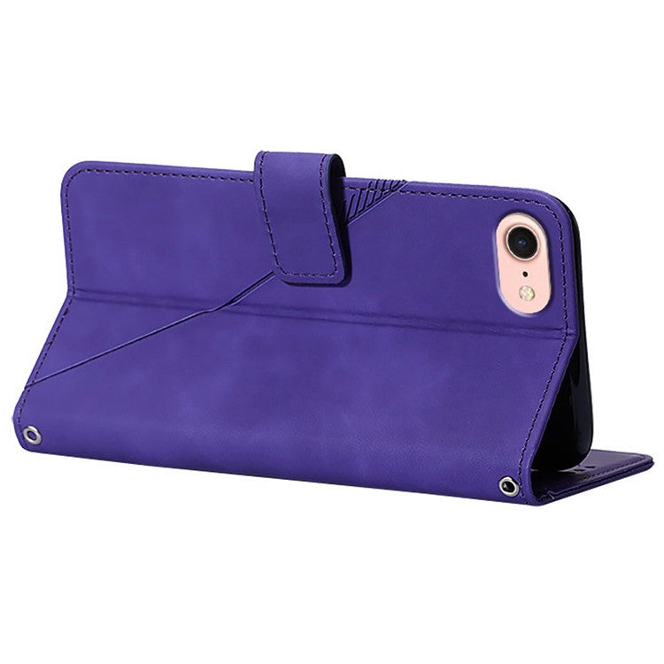 YB Imprinting Series-2 for iPhone 16e Cell Phone Case Stand Magnetic Cover with Shoulder Strap - Purple