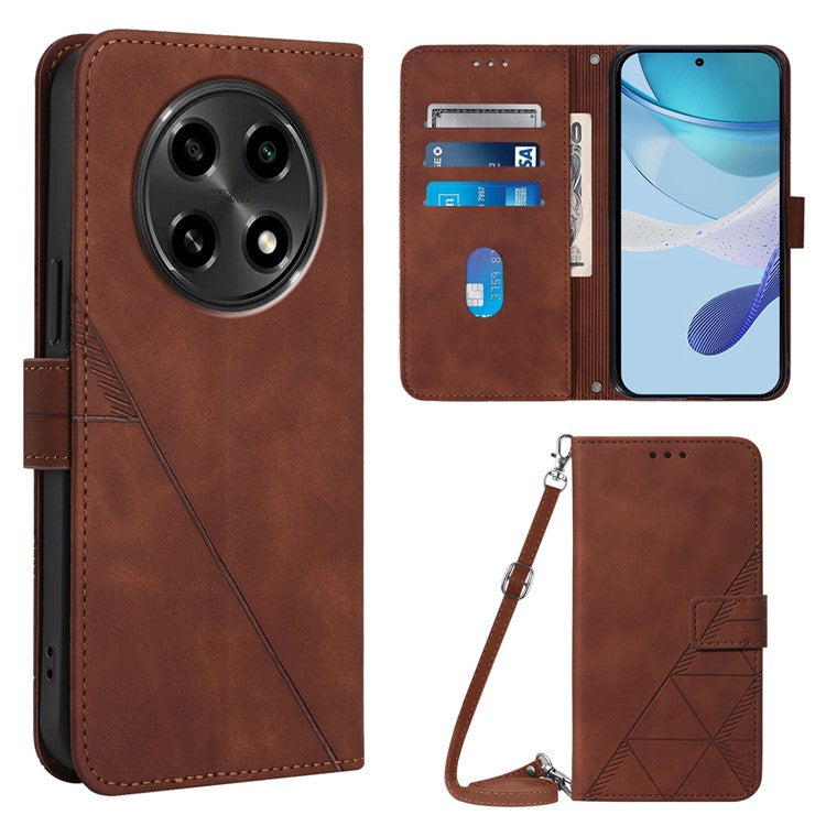 YB Imprinting Series-2 for Oppo A2 Pro 5G / A3 Pro (China) 5G Case PU Leather Imprinted Phone Cover with Shoulder Strap - Brown