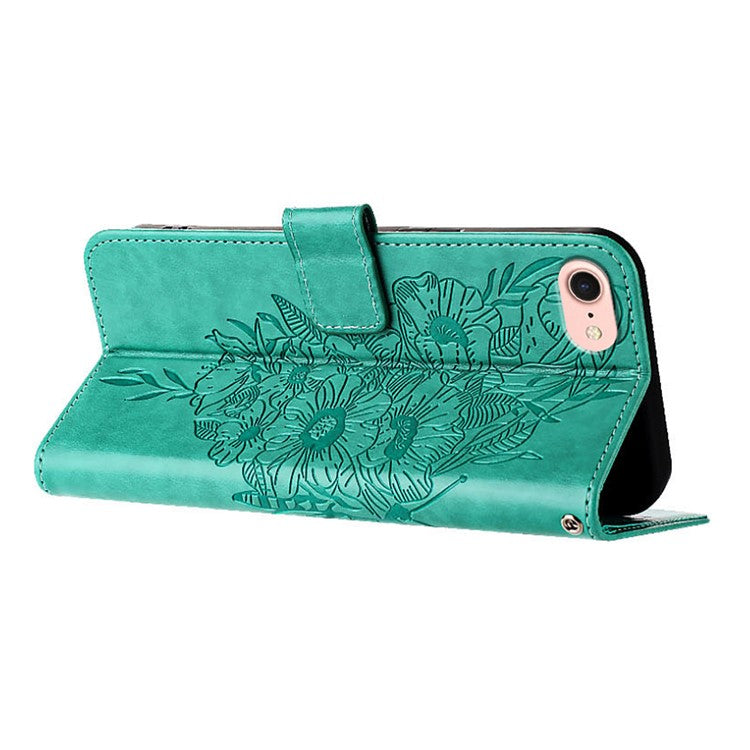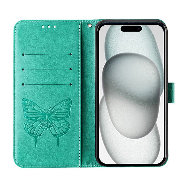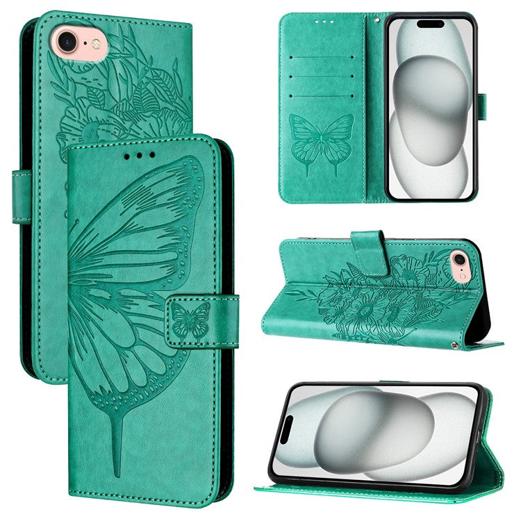 YB Imprinting Series-4 For iPhone 16e Wallet Case Shockproof Leather Phone Cover with Hand Strap - Green