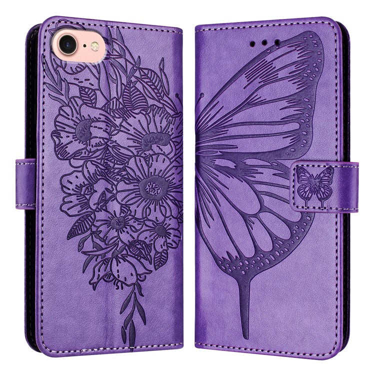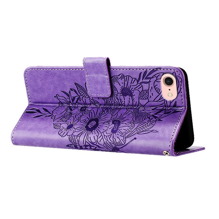 YB Imprinting Series-4 For iPhone 16e Wallet Case Shockproof Leather Phone Cover with Hand Strap - Light Purple