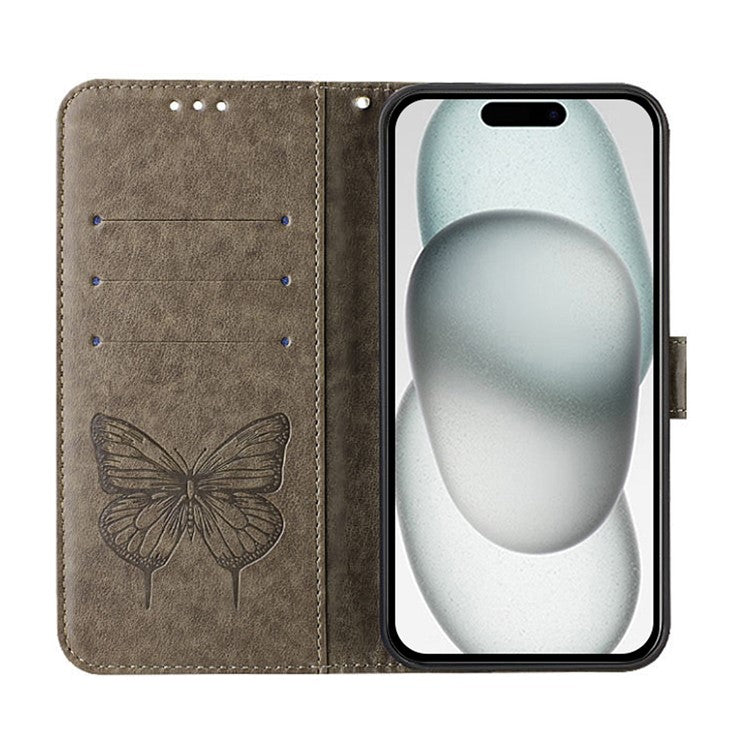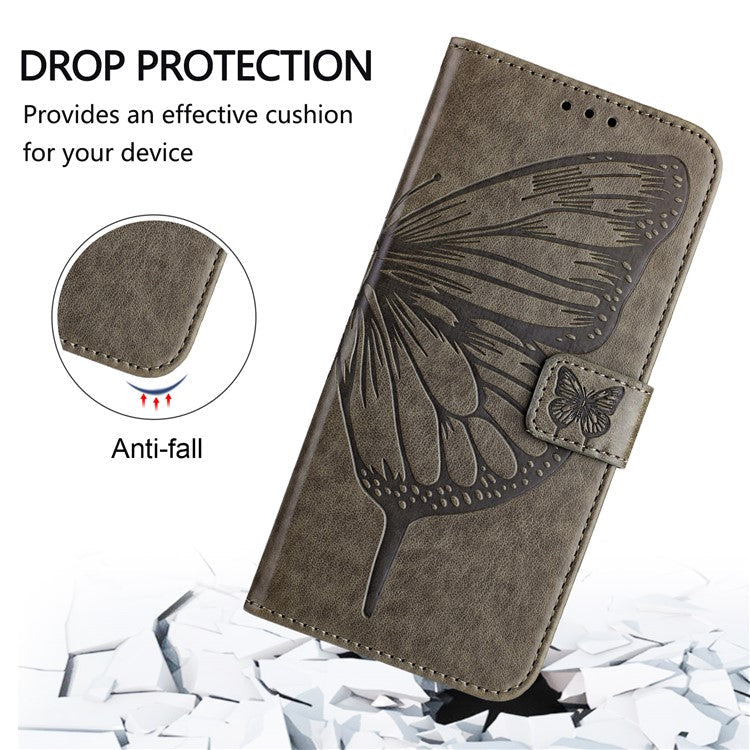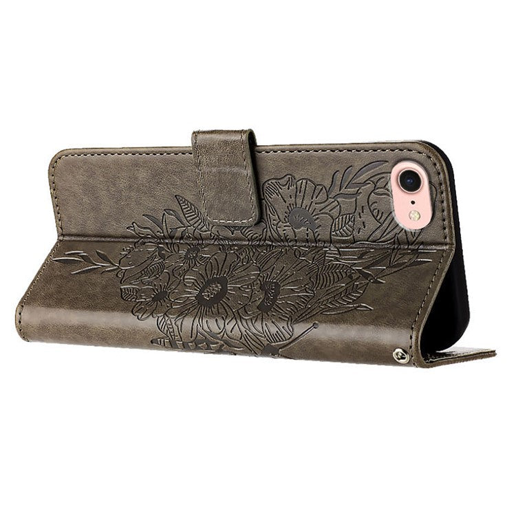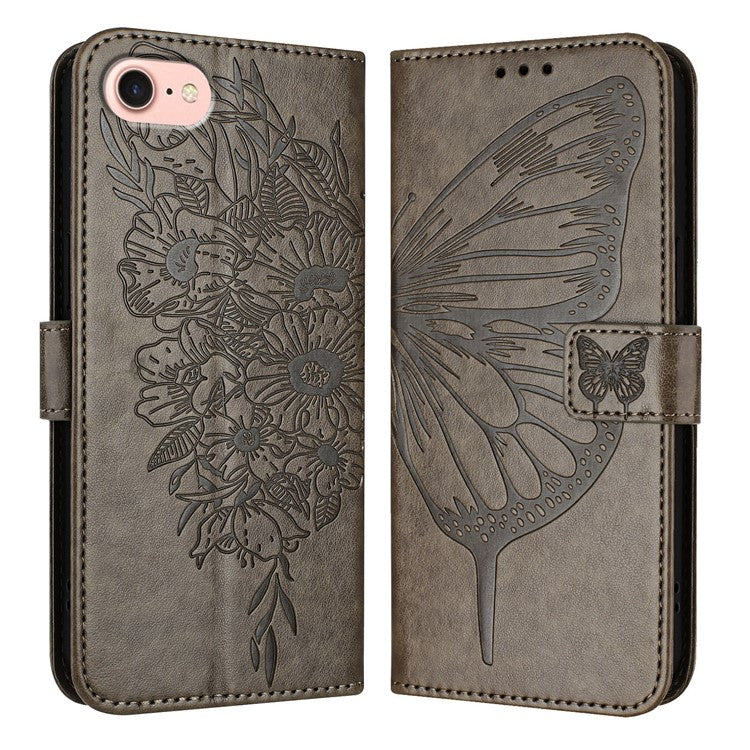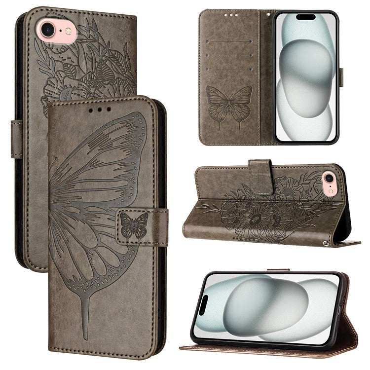 YB Imprinting Series-4 For iPhone SE (2025) Wallet Case Shockproof Leather Phone Cover with Hand Strap - Grey