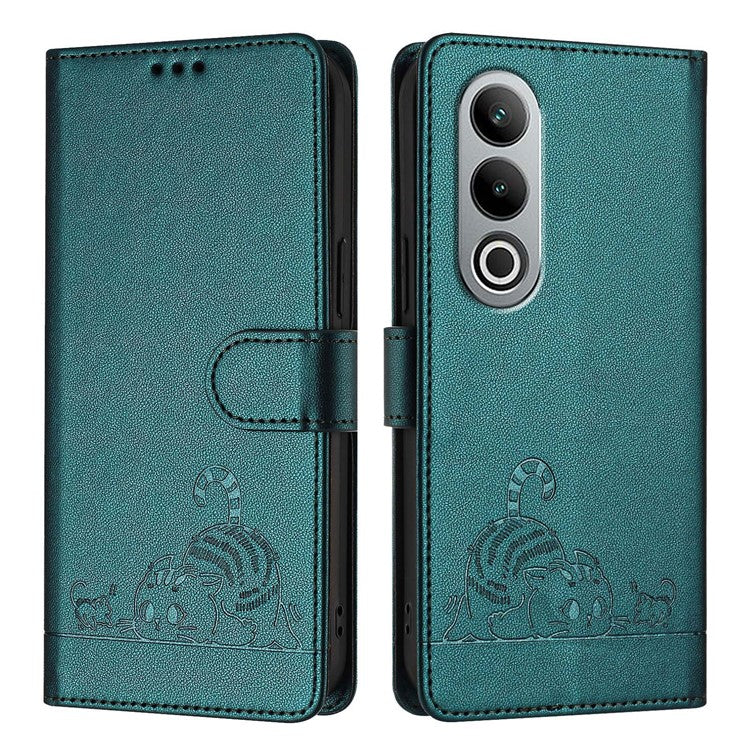 YB Imprinting Series-9 for OnePlus Nord CE4 5G Wallet Case RFID Blocking Leather Flip Phone Cover - Dark Green