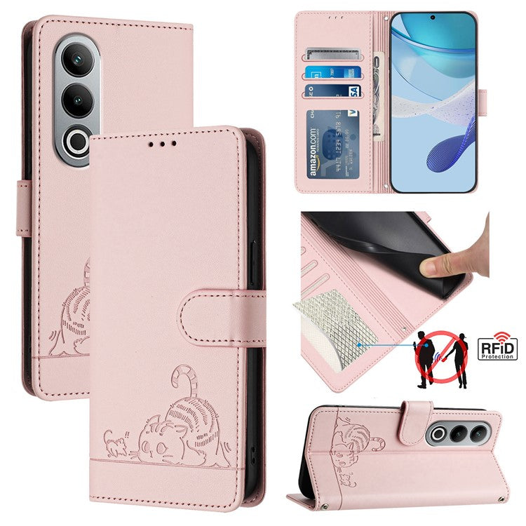 YB Imprinting Series-9 for OnePlus Nord CE4 5G Wallet Case RFID Blocking Leather Flip Phone Cover - Pink