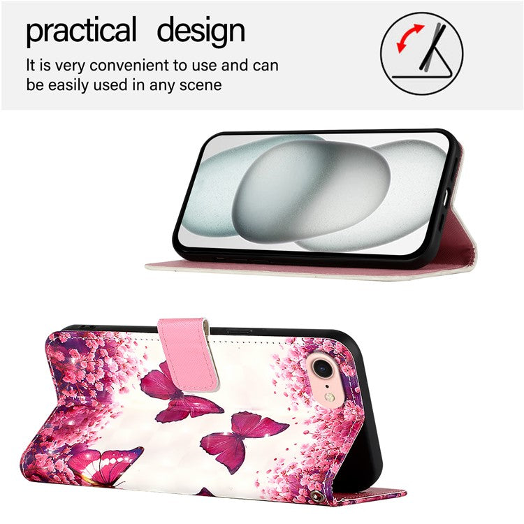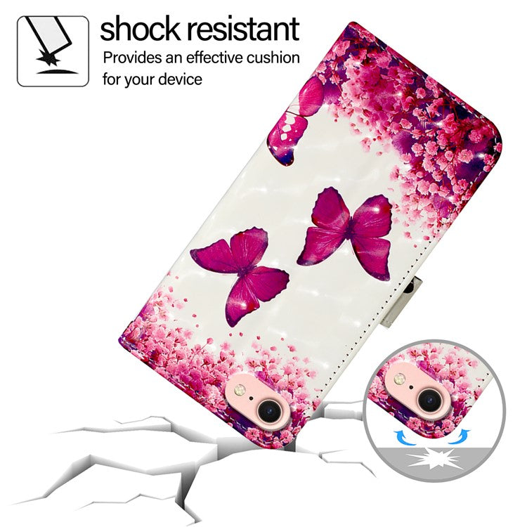 YB Pattern Printing Leather Series-2 For iPhone 16e Protective Case with Hand Strap - Rose Butterflies