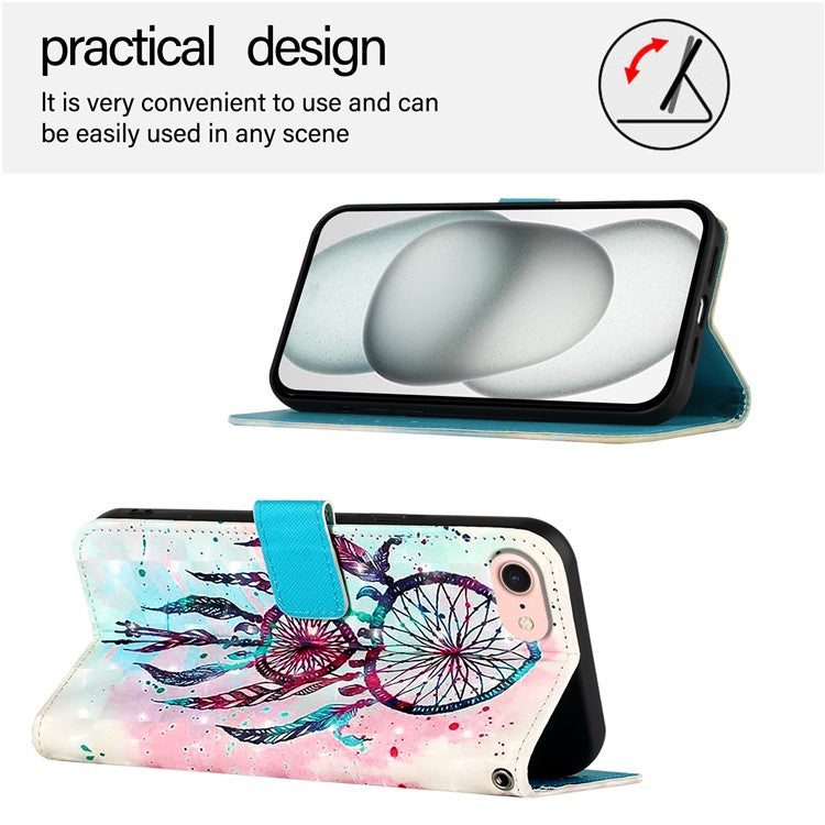 YB Pattern Printing Leather Series-2 For iPhone SE (2025) Protective Case with Hand Strap - Colorful Wind Chime