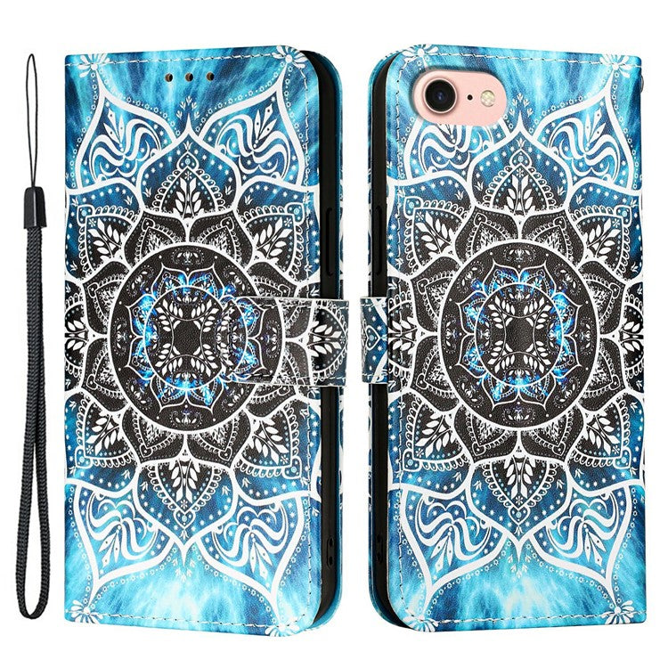 YB Pattern Printing Leather Series-4 for iPhone 16e Case Wallet Phone Cover Wholesale - Mandala Flower