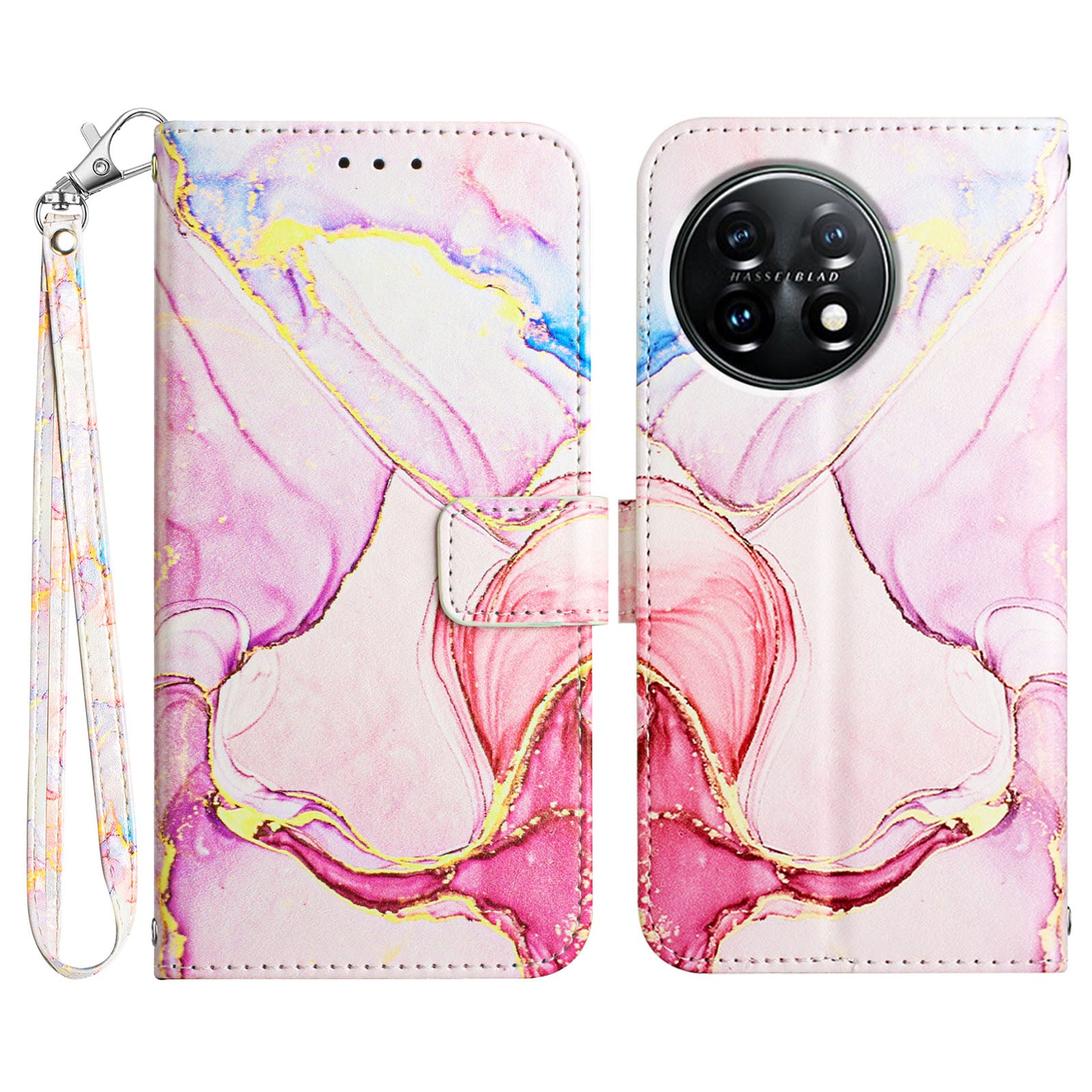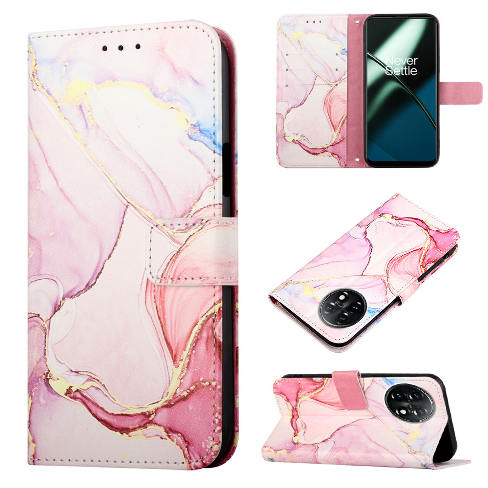 YB Pattern Printing Leather Series-5 For OnePlus 11 5G Marble Pattern Protective Cover Phone Case Wallet - Rose Gold 005