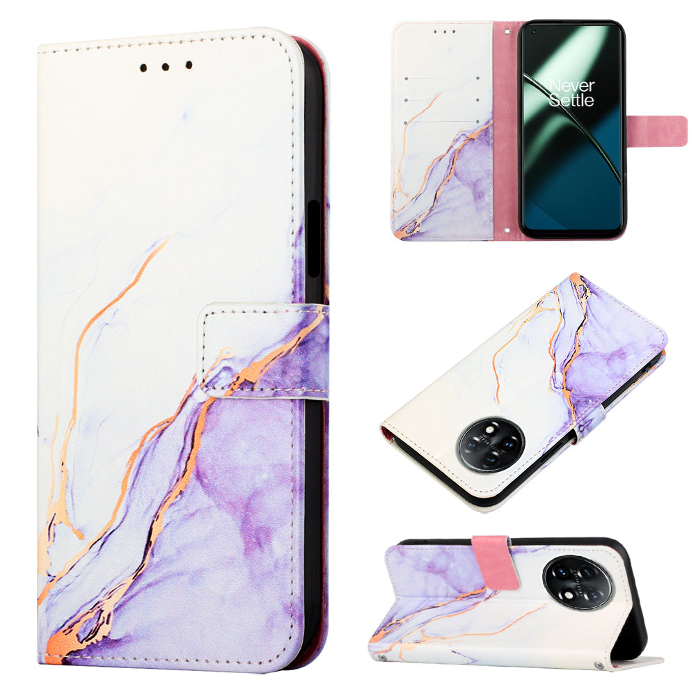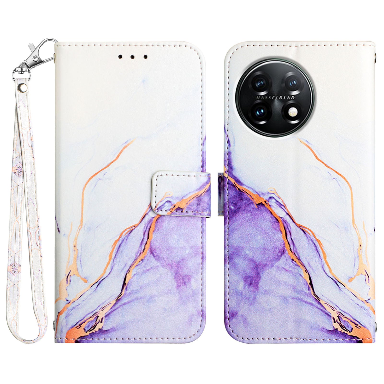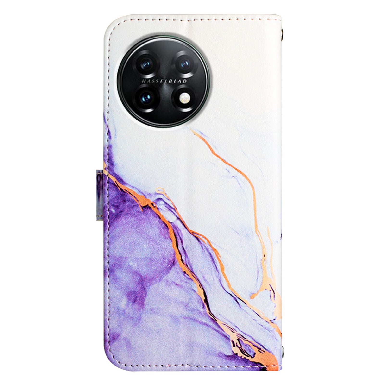 YB Pattern Printing Leather Series-5 For OnePlus 11 5G Marble Pattern Protective Cover Phone Case Wallet - White / Purple 006