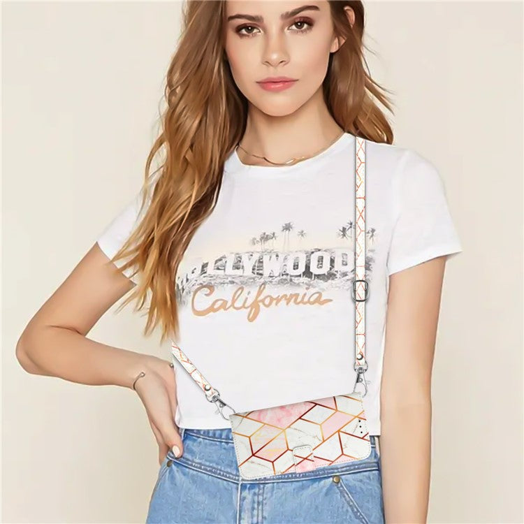YB Pattern Printing Leather Series-6 For iPhone 16 Pro Case Marble Wallet Crossbody Phone Cover - Pink / White LS002