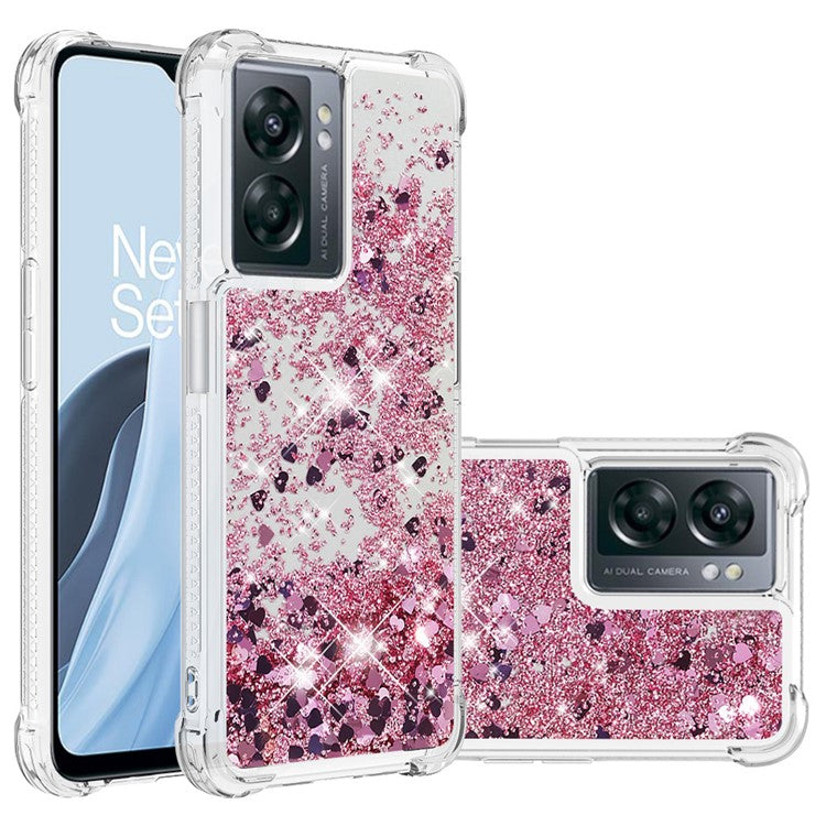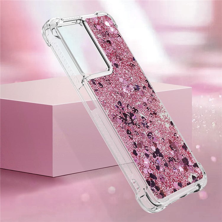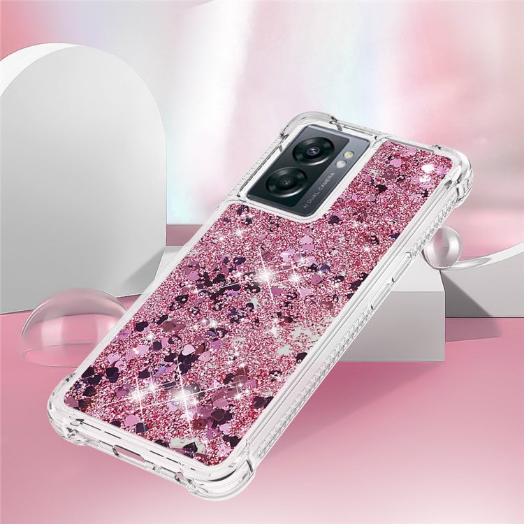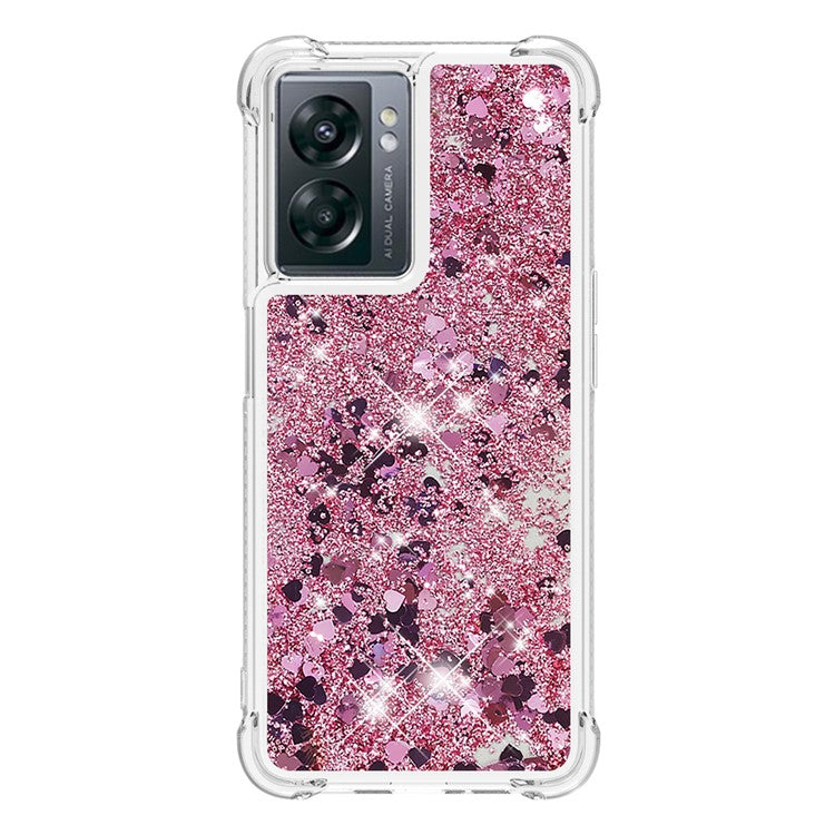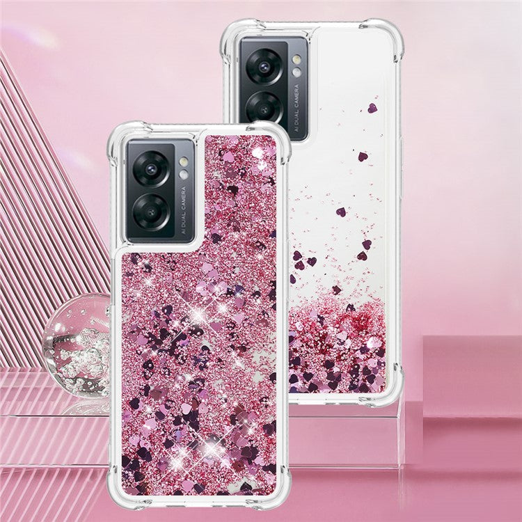 YB Quicksand Series-1 for OnePlus Nord N300 5G / Oppo A57 (2022) 5G / A77 5G / Realme Q5i / Narzo 50 5G / V23 5G Floating Glitter Quicksand Phone Case Soft TPU Cover - Rose Gold  /  Hearts