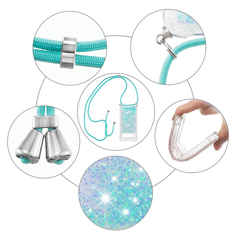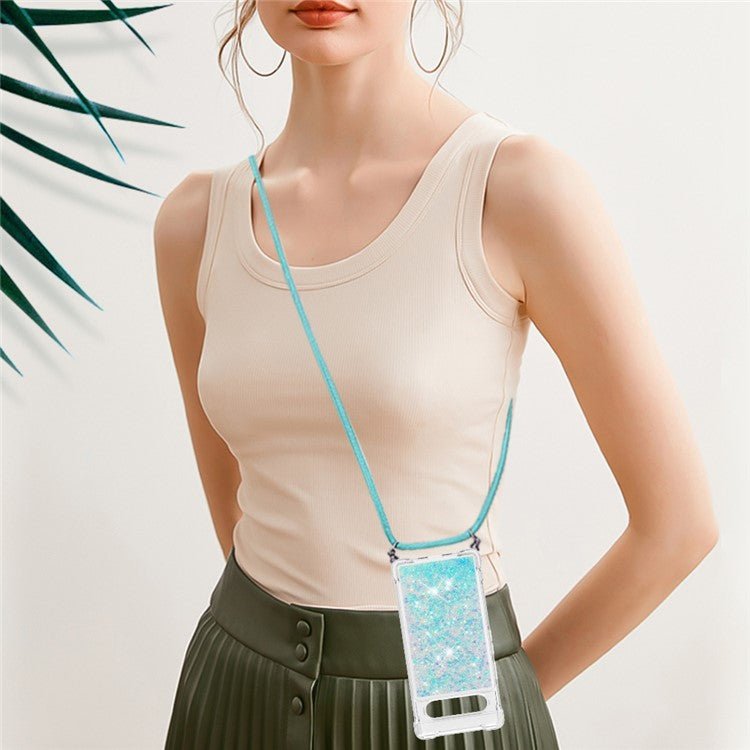 YB Quicksand Series-4 for Google Pixel 7a 5G Liquid Quicksand Phone Protective Case Soft TPU Drop-proof Cover with Lanyard - Blue / Pentagram