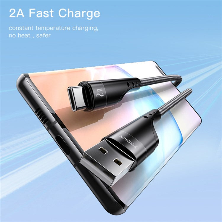 YESIDO CA109 3m Nylon Braided Data Cable 2A USB to Type-C Charging Cable