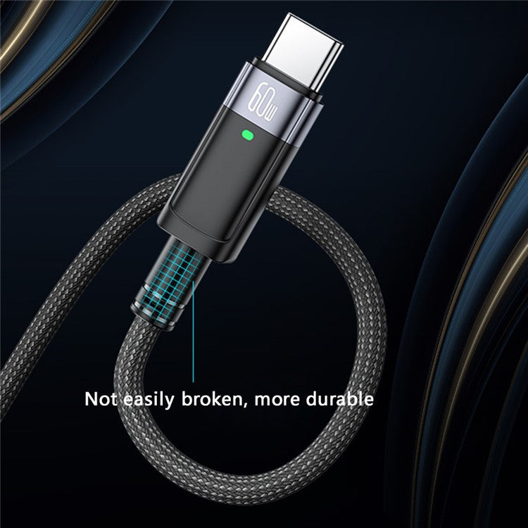 YESIDO CA160 PD 60W Auto Power Off Charging Cable USB-C to USB-C Braided Mobile Phone Data Cord