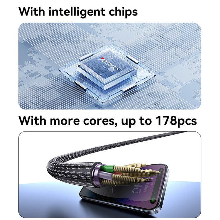 YESIDO CA165L 1.2m USB / Type-C 2-in-1 Plug to 8-pin Phone Charging Cable Braided Data Cable