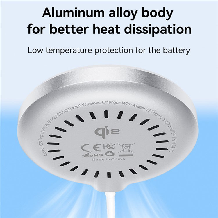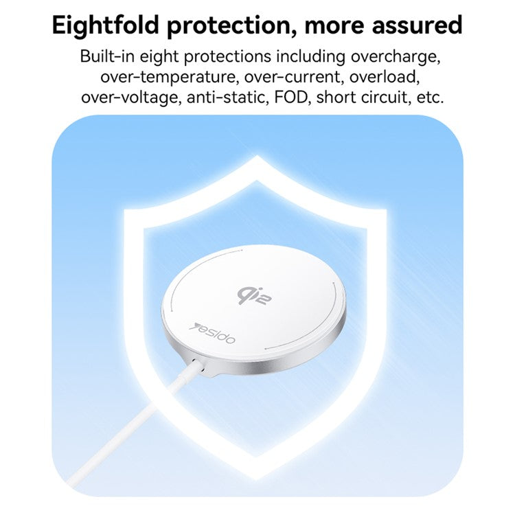YESIDO DS24 QI2 Round Magnetic Wireless Charger Phone Type-C Cable Charging Pad