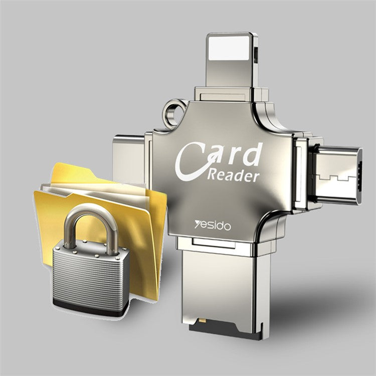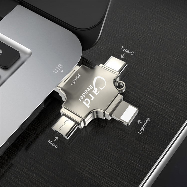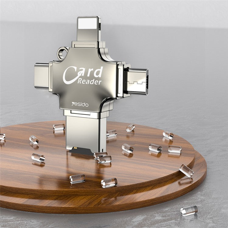YESIDO GS13 USB+Type-C+Micro+Lightning Multifunction Card Reader OTG Adapter for iPhone/Android/TF Card