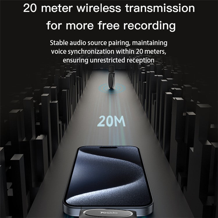 - 20m wireless transmission for more free recording: Stable audio source pairing, maintaining voice synchronization within 20 meters, ensuring unrestricted reception
