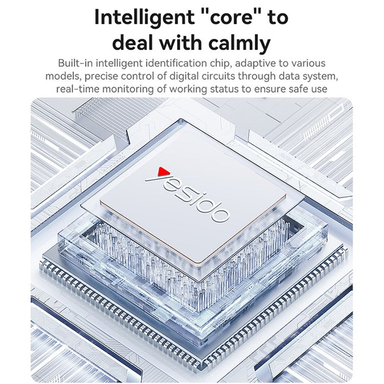 YESIDO YC52 30W EU Plug 3-Port Fast Charging Adapter Wall Charger with Type-C to 8-Pin Cable - White