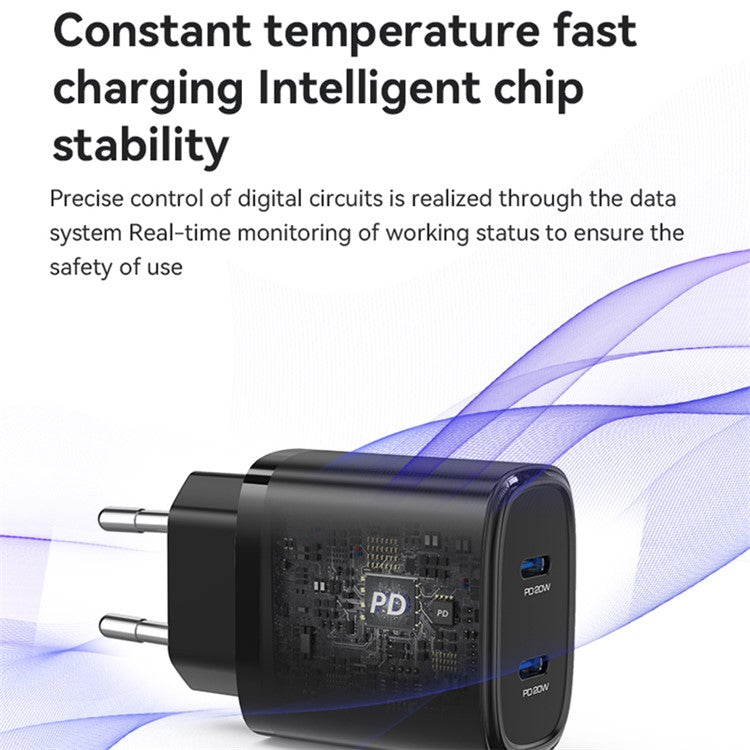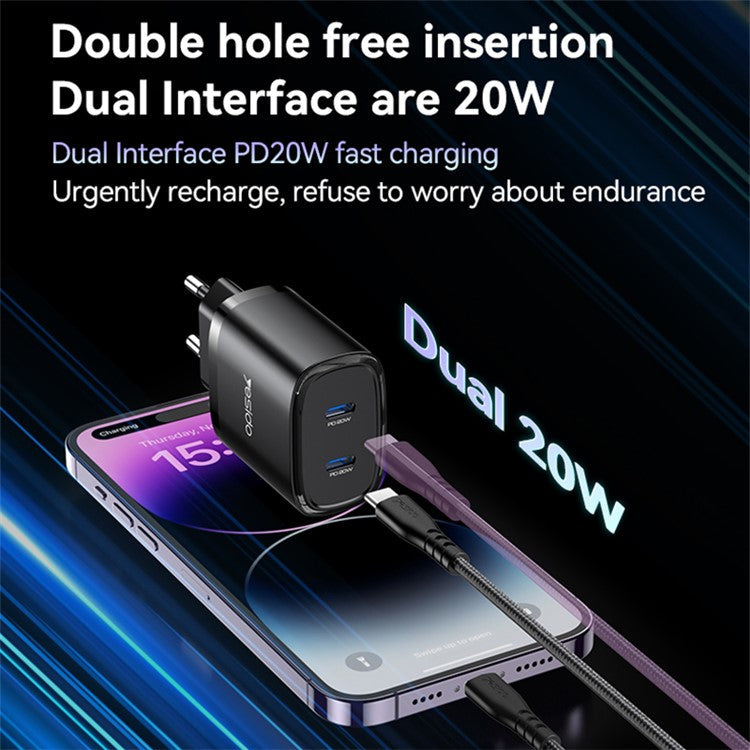 YESIDO YC56 20W EU Plug Wall Charger Adapter with Type-C Cable - Black