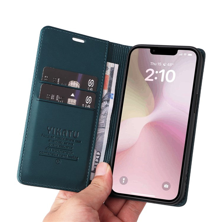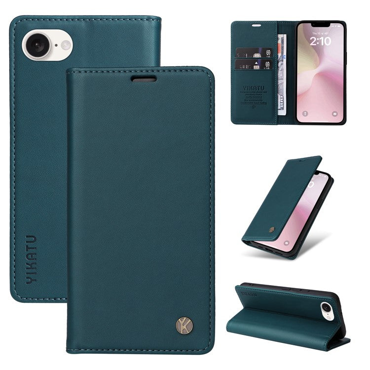 YIKATU YK-001 For iPhone 16e Case Stand Wallet PU Leather Phone Cover - Green