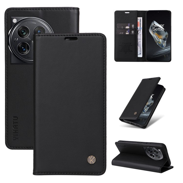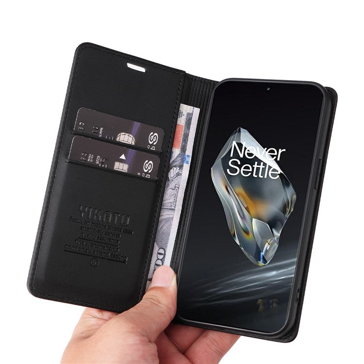 YIKATU YK-001 For OnePlus 12 5G Wallet Case PU Leather Phone Cover Magnetic Closing - Black