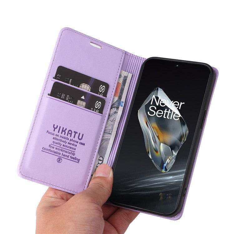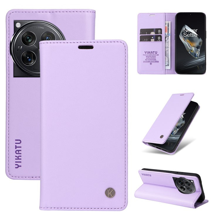 YIKATU YK-001 For OnePlus 12 5G Wallet Case PU Leather Phone Cover Magnetic Closing - Light Purple