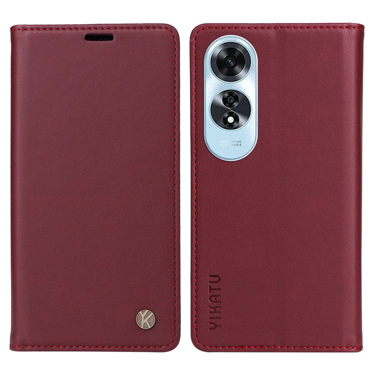 YIKATU YK-001 For Oppo A60 4G Case Stand View Magnetic Protect PU Leather Phone Cover - Wine Red