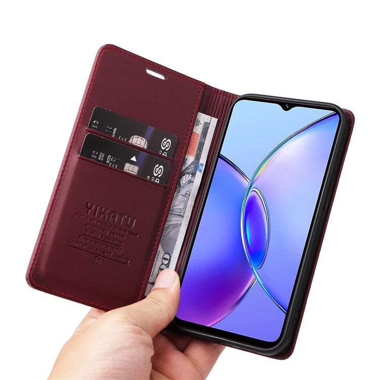 YIKATU YK-001 For vivo Y17s 4G Magnetic Case Leather Wallet Card Slots Phone Cover - Wine Red