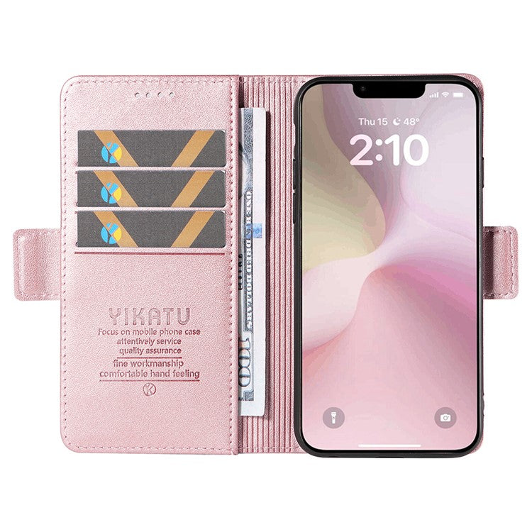 YIKATU YK-003 For iPhone 16e Case Leather Wallet Phone Cover Mobile Accessories Wholesale - Rose Gold