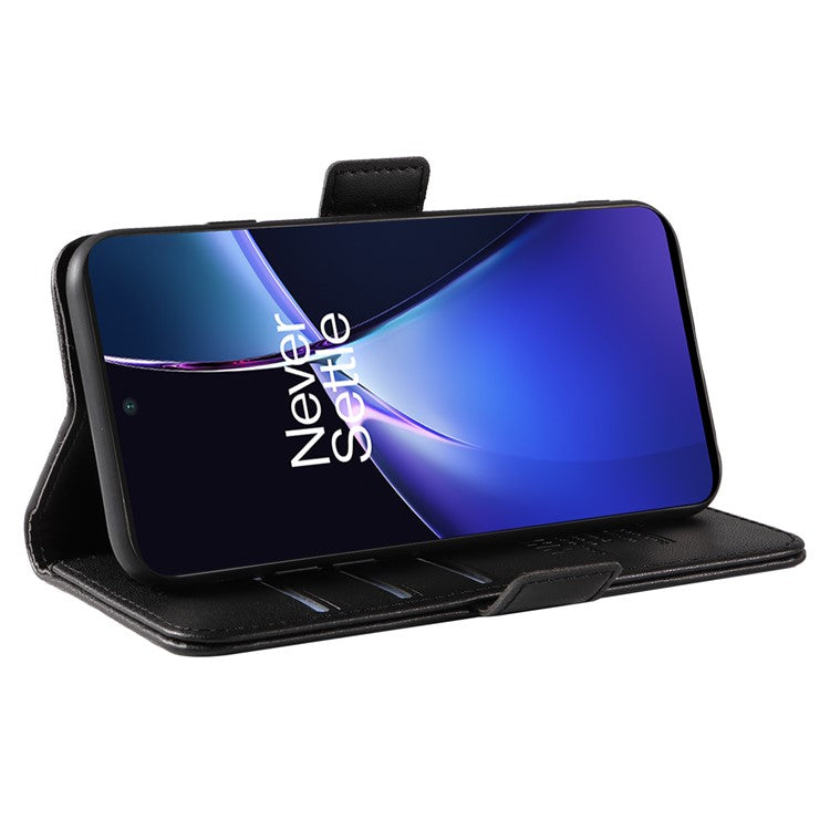 YIKATU YK-003 For OnePlus Nord CE4 Lite 5G / Oppo K12x 5G (China) Case Card Holder Stand Leather Phone Cover - Black
