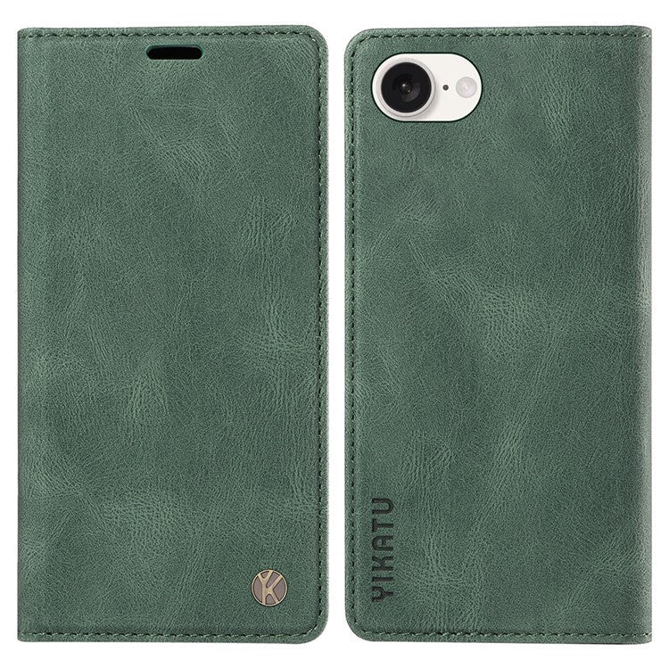 YIKATU YK-004 For iPhone 16e Case PU Leather Stand Magnetic Phone Cover - Green