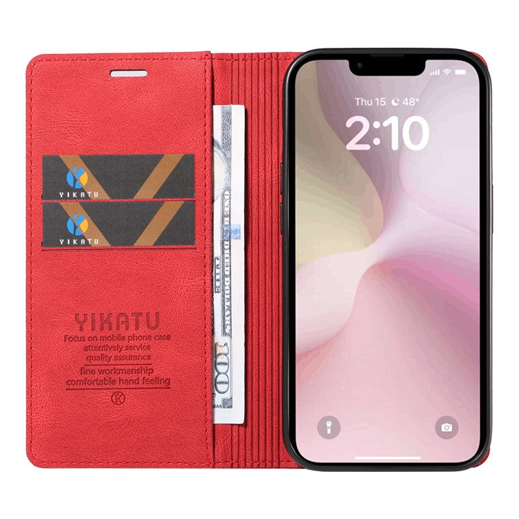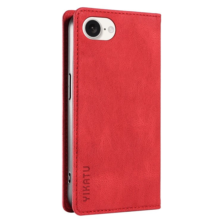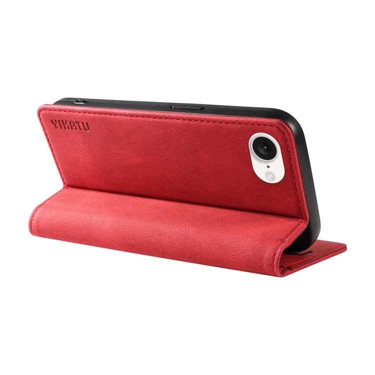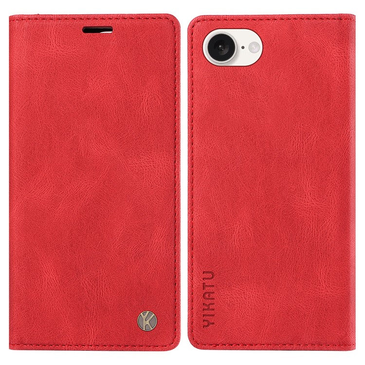 YIKATU YK-004 For iPhone 16e Case PU Leather Stand Magnetic Phone Cover - Red