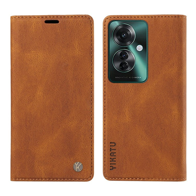 YIKATU YK-004 For Oppo Reno11 F 5G / F25 Pro 5G Leather Case Skin-touch Wallet Phone Cover - Brown