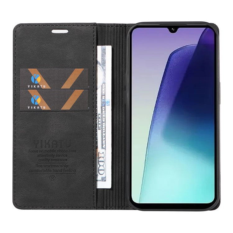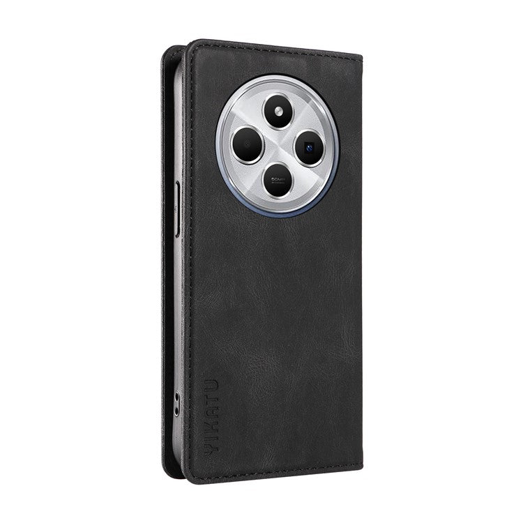 YIKATU YK-004 For Xiaomi Poco C75 4G / Redmi 14R 5G / 14C 4G Case Leather Skin-Touch Phone Cover Magnetic Auto-Absorbed - Black