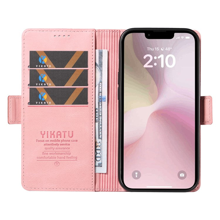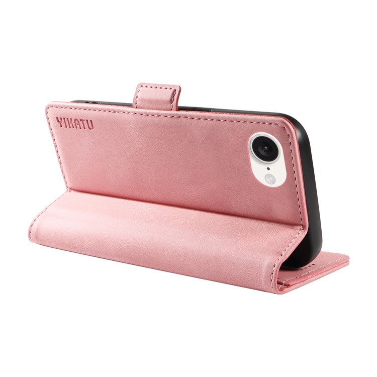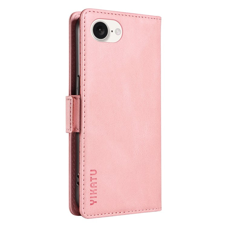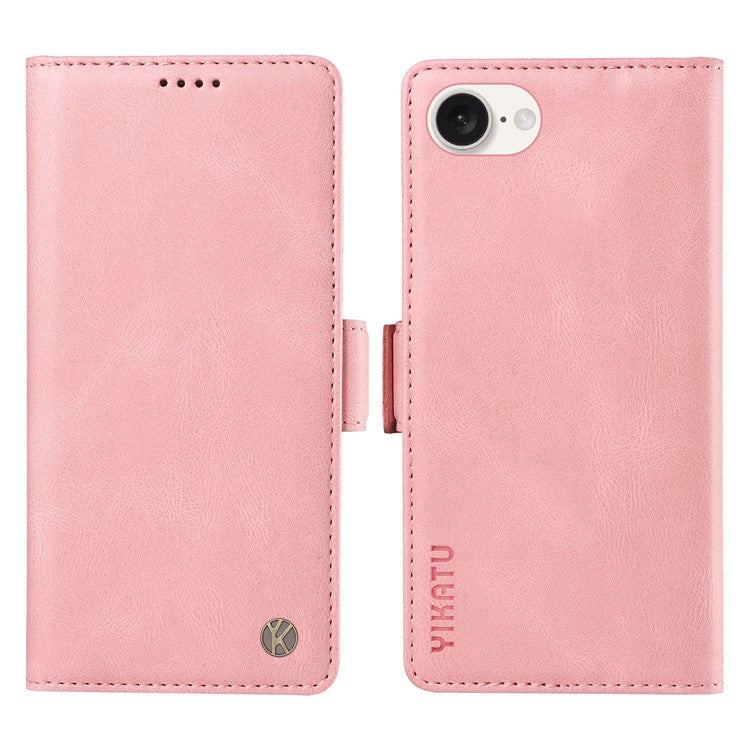 YIKATU YK-005 For iPhone 16e Case Skin-Touch Leather Stand Card Slots Phone Cover - Pink